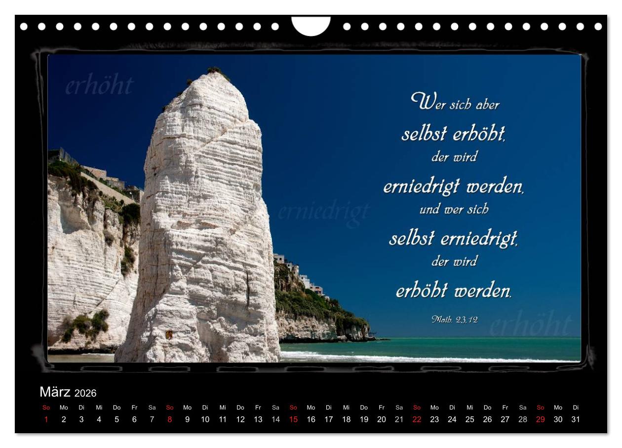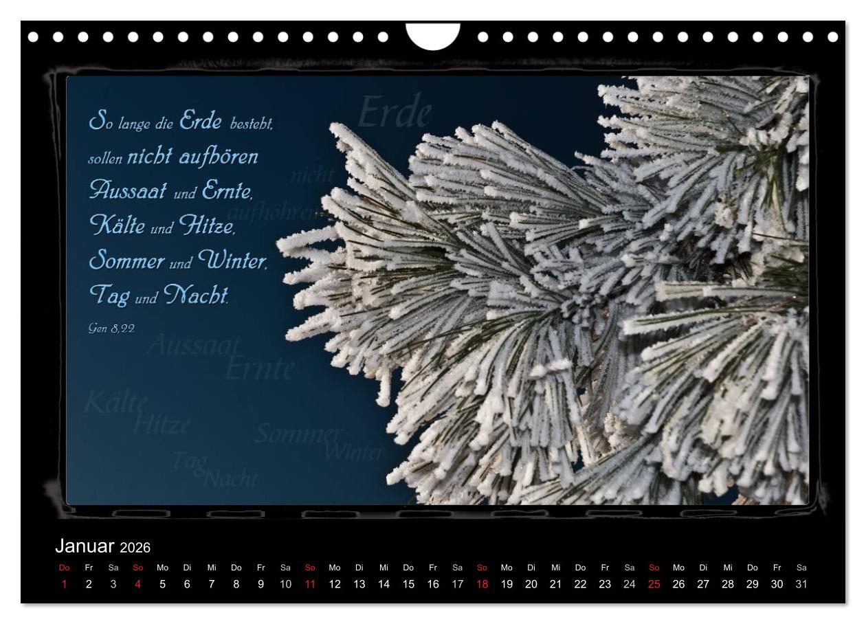 Da für mich die Bibelverse eine besondere Bedeutung haben, habe ich mich, bei diesem Kalender, außerordentlich bemüht dass Wort und Bild eine außergewöhnlich gute Zusammengehörigkeit bilden.